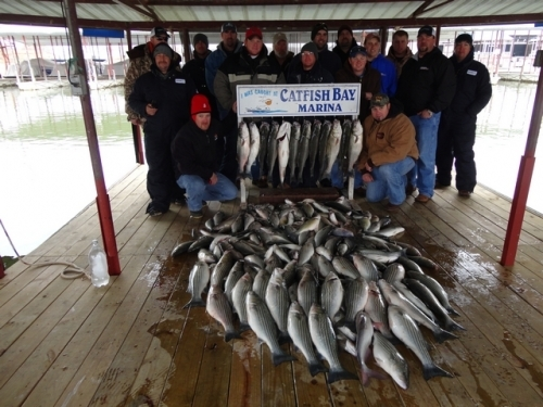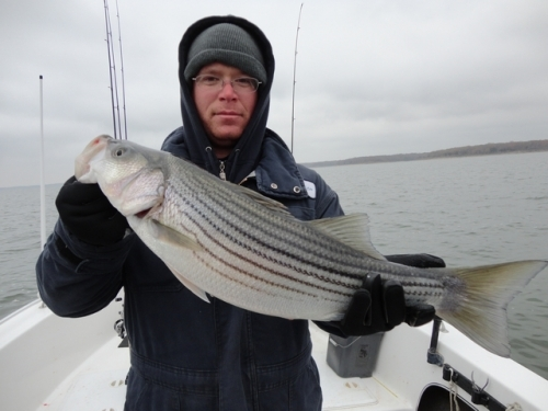 Fishing remains great on Texoma. Bird action is hit or miss but the bite is mostly hit. Live bait is still working great but the lure action is heating up also. Slow retrieves are key to rubber, swim baits. Flukes and Sassys are king right now. I'm still using only live bait and I'm trying to get the biggest Threads I can find in the 4 inch plus range. Fish are running deep and our better fish are 30ft to the bottom on live bait. The Stripers have started their migration to the mouths of the Red and Washita Rivers. You can still find plenty of fish mid-lake though and there isn't a reason to move far from where ever you launched from. Water temps are falling and that increases the danger if you fall in, so be sure to wear those life jackets.